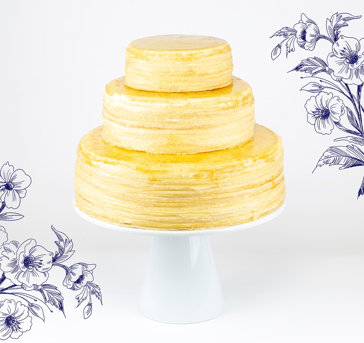 Lady M would love to be part of your special day. We offer Mille Crêpes wedding cakes in a collection of iconic flavors coupling layers of handmade crêpes and fresh cream. From Signature to Green Tea and Chocolate, each unique three-tier cake serves up to 45 guests.
